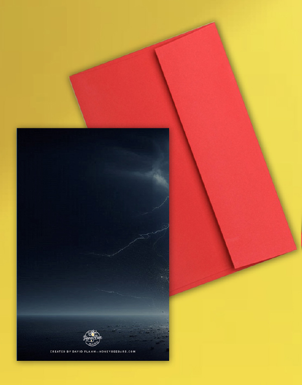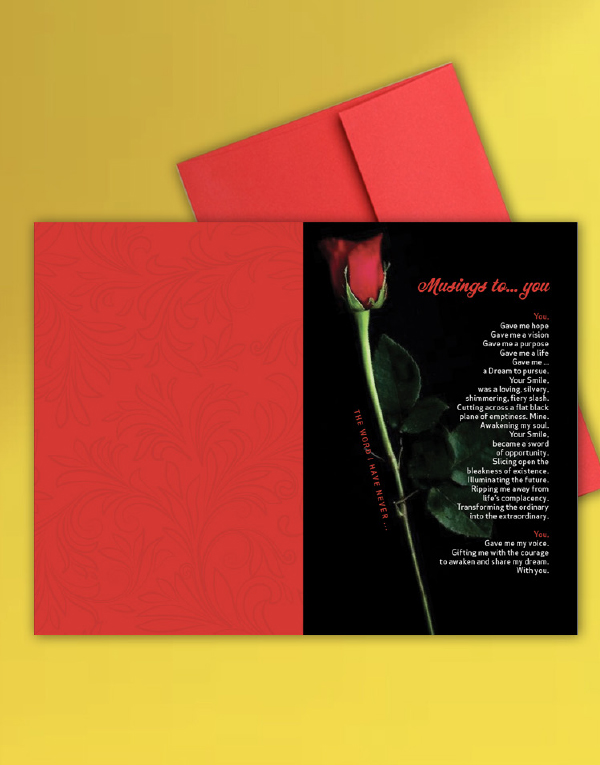 5.5” x 8.5” greeting card with 5 ¾” x 8 ¾” envelope. “My Muse Valentine” love message and card design by David Plahm. Select “Customized Card” in the drop box below and “Love, (your name)” will be signed in the cursive muse font on the interior left red panel. ($7.99). Or select “Standard Card” ($4.99) and this area will be left blank, ready for your signature. *Special note: We have a wide range of color envelopes. Yours will be carefully selected but may not match the color shown in the photo at left.